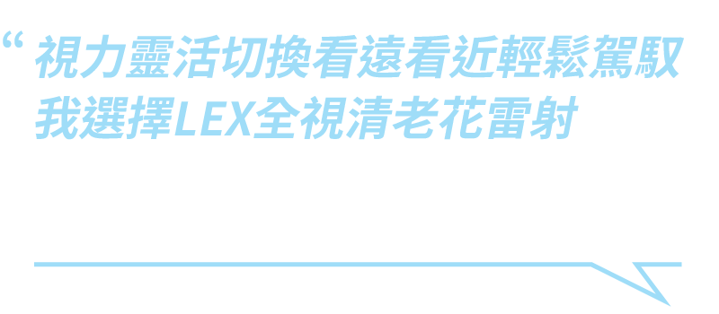 LEX是Lens exchange晶體置換術的英文縮寫,將調節力變差的水晶體替換成清澈具有調節遠、中、近能力的多焦點人工水晶體,